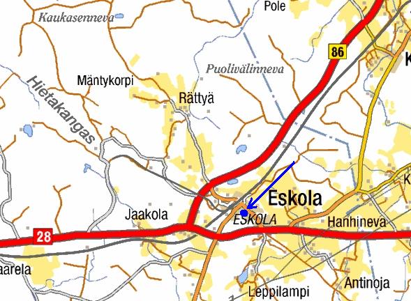 Ajo-ohje ![]() Koepaikka sijaitsee Eskolassa, n. 12,5 km Kannuksesta Kajaaniin päin ![]() Koe pidetään Eskolan kylätalolla. |